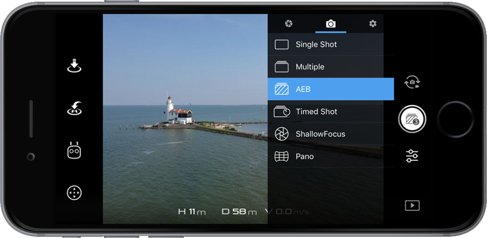 AEB (Otomatik Pozlama Basamaklama): Bu 3 veya 5 çekim olarak ayarlanabilir ve aşırı pozlanmış, düşük pozlanmış ve düzgün pozlanmış fotoğraflar çekerek HDR Çekimine benzer şekilde çalışır. Bununla birlikte, AEB’de görüntüler RAW’dedir ve bunlar birleştirilmediğinden, bunlar görüntü düzenleme yazılımı ile birleştirilir. (Spark değil)
